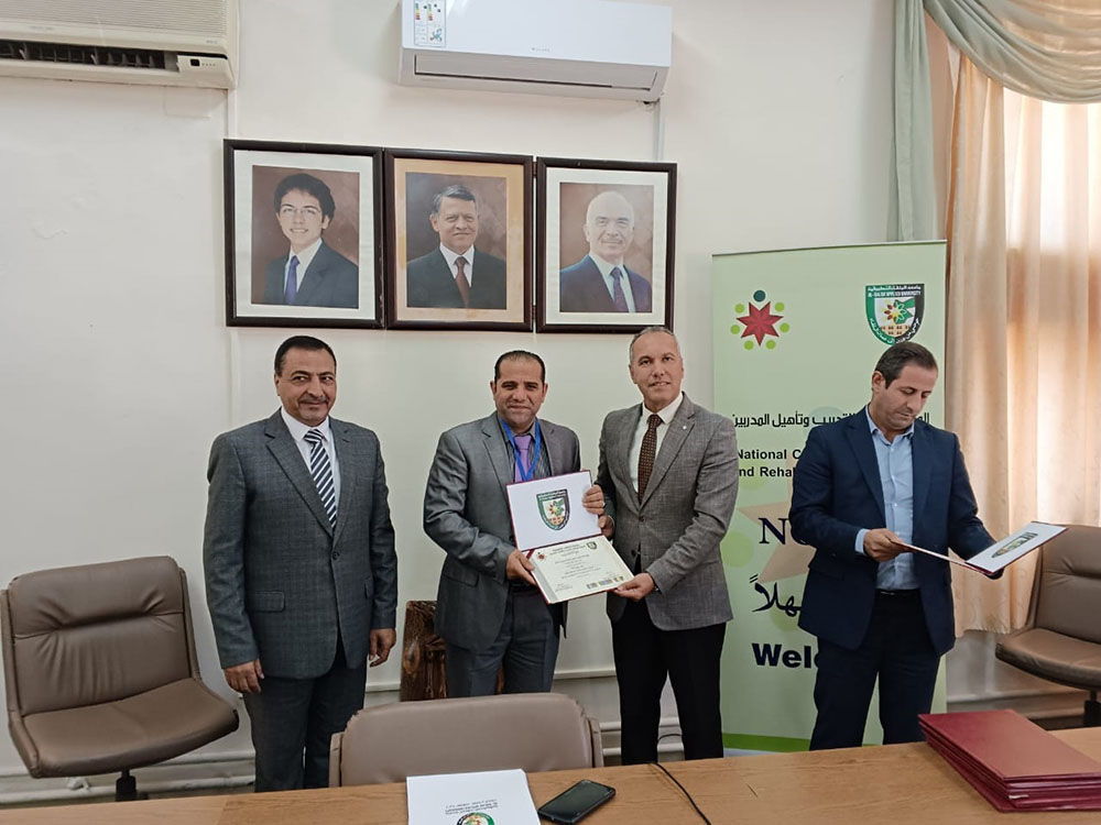 مندوباً عن رئيس جامعة البلقاء التطبيقية الأستاذ الدكتور أحمد فخري العجلوني رعى مدير المركز الوطني للتدريب وتأهيل المدربين الأستاذ الدكتور زيد العدوان وبحضور عميد كلية الحصن الجامعية الأستاذ الدكتور كامل الزبون اختتام دورة تدريب المدربين TOT المنعقدة لعدد من أعضاء الهيئة التدريسية في كلية الحصن الجامعية وبواقع 20 ساعة تدريبية.