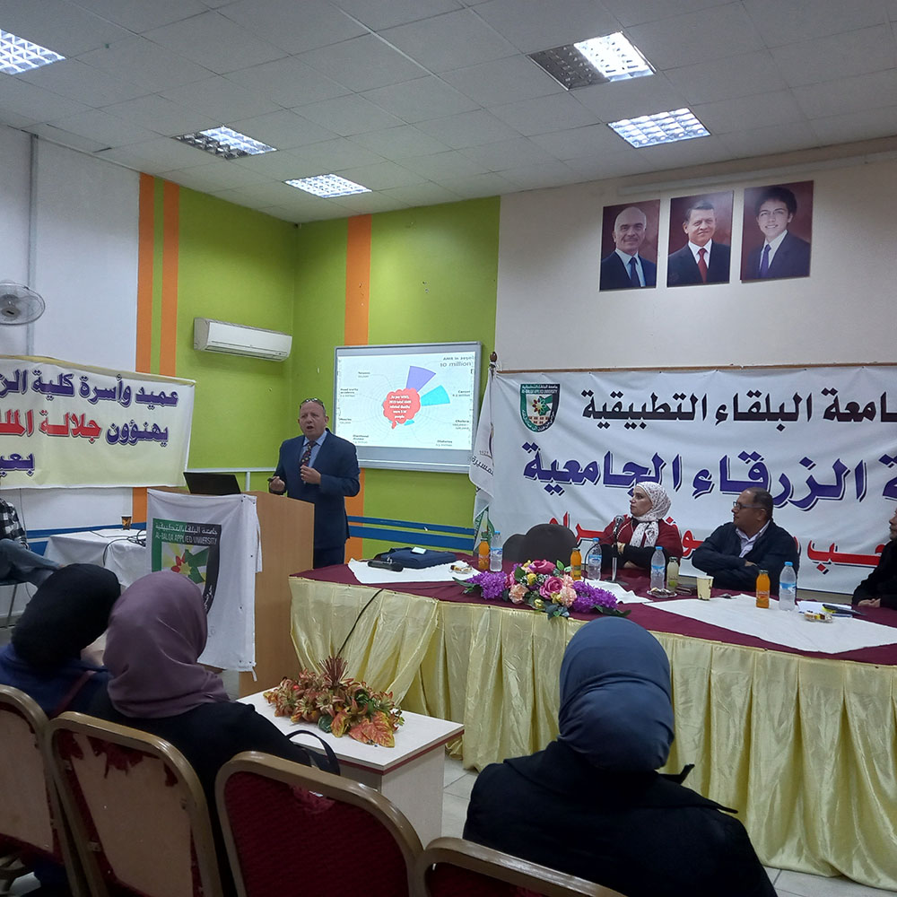 ضمن الأنشطة اللامنهجية التي تنظمها كلية الزرقاء الجامعية والتي تعمل على تعزيز كفاءة الطلبة في مجال الصحة والتعليم وانطلاقا من نشر الوعي الصحي لدى الطلبة أقامت كلية الزرقاء الجامعية/جامعة البلقاء التطبيقية محاضرة بعنوان " مقاومة الجراثيم للمضادات الحيوية "بحضور نائب عميد الكلية ومساعد العميد للشؤون الطلابية وأعضاء من الهيئة التدريسية وعدد كبير من طلبة الكلية .