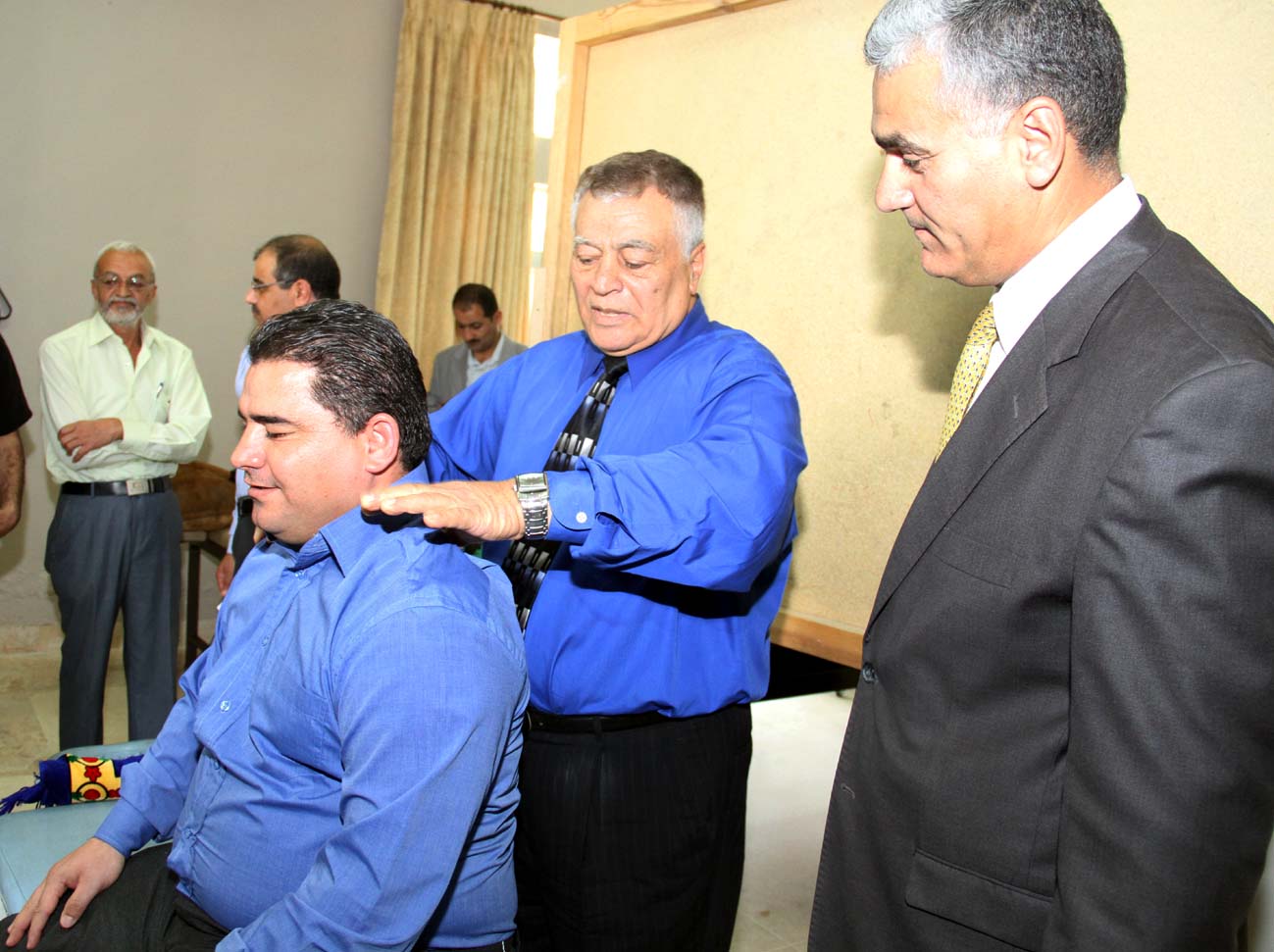 وفي ختام زيارته قام الطراونة بالكشف عن العديد من الحالات المرضية لموظفي الجامعة وذلك بتسخير علمه في هندسة العمود الفقري لمعالجتها مبيناً بأن هذه الحالات تعالج يدوياً .