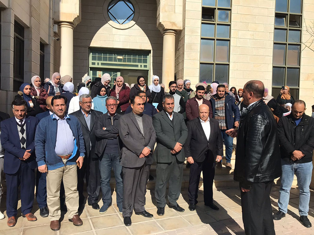 تنفيذا لتوجيهات رئيس جامعة البلقاء التطبيقية الاستاذ الدكتور أحمد فخري العجلوني نفذت كلية الكرك الجامعية وقفة تضامنيّة اليوم مع شهداء الوطن بحضور عميد الكلية الاستاذ الدكتور محمد الصرايرة وعدد من أعضاء الهيئتين التدريسه والإدارية والطلبة.