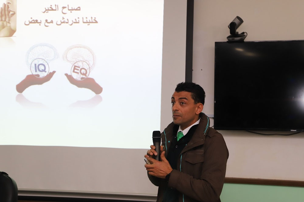 وتحدث في الفعالية الخبير النفسي الاستاذ شادي الطيبي مبينا بان الذكاء العاطفي يساعد الفرد على النجاح في العمل وفي جميع مجالات الحياة المختلفة معرفا الذكاء العاطفي بأنه قدرة الفرد على التعرف على مشاعره وأحاسيسه والتعامل معها بايجابية جنبا الى جنب مع قدرة الفرد على معرفة مشاعر الاخرين وأحاسيسهم والتعامل معها بايجابية .