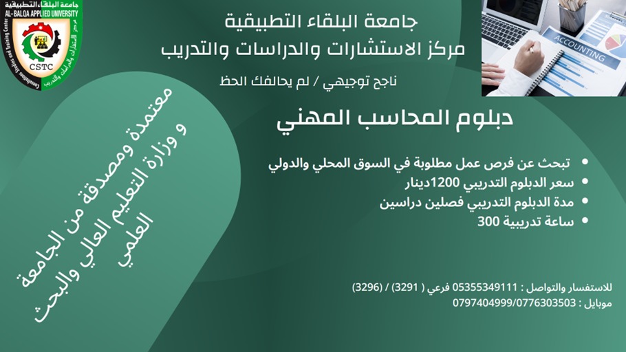 شهادة صادرة ومصدقة من جامعة البلقاء التطبيقية ومعتمدة من وزارة التعليم العالي والبحث العلمي