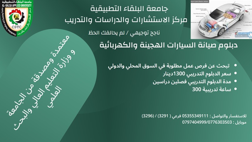 دبلوم صيانة السيارات الهجينة والكهربائية للتسجيل الرجاء الدخول الى الرباط التالي