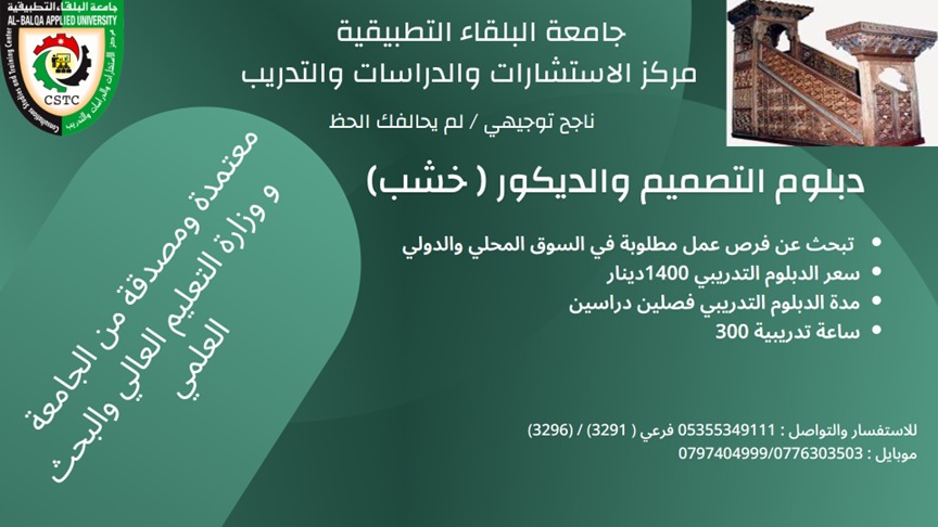 دبلوم التصميم والديكور ( خشب) للتسجيل الرجاء الدخول الى الرباط التالي