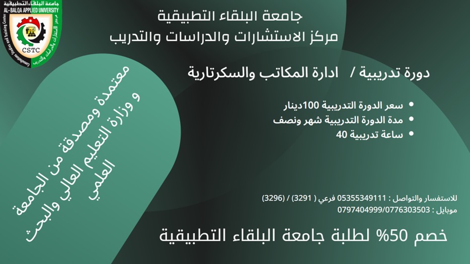 دورة إدارة المكاتب والسكرتارية للتسجيل الرجاء الدخول الى الرباط التالي ( غير مخصص لموظفي جامعة البقاء التطبيقية )
