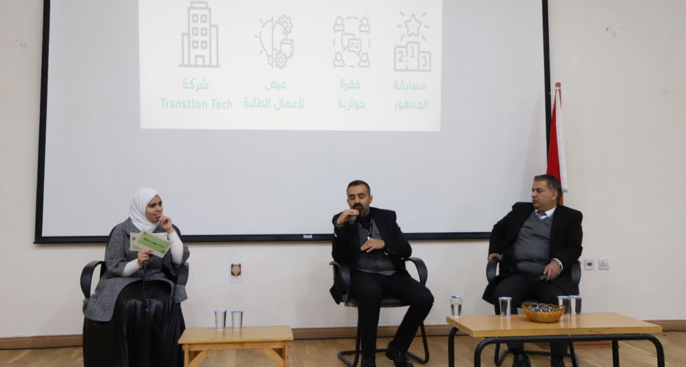 وتضمنت فعاليات النشاط جلسة حوارية شارك فيها أحد خريجي الجامعة وصاحب شركة techs factory معتصم شاهين حيث تحدث فيها عن تجربته وعمله في القطاع الخاص وتأسيس شركته الخاصة المتخصصة في البرمجة ، وأشار شاهين الى أهمية ودور المهارات والتميز وضرورة اختيار المسار المناسب والتخصص الذي من خلاله يستطيع الطالب ان يبدع ويتميز فيه، وتطرق شاهين الى اهم المشاكل والصعوبات التي قد يواجهها الخريج في سوق العمل وبعد التخرج مباشرة . كما وشارك في الجلسة الحوارية عضو هيئة التدريسية في كلية الامير عبدالله ين غازي للاتصالات وتكنولوجيا المعلومات الدكتور محمد الريالات مشيرا الى اهمية ودور الطالب في اختيار وتحديد المسار الذي يبدع فيه ويكون لديه الشغف والشعور بإمكانية التميز والإبداع فيه وذلك بعد تلقيه المعارف والمعلومات العامة عبر المساقات التي يدرسها في بداية دراسته الجامعية كما وأشار الدكتور الريالات الى ضرورة اكتساب مهارات التواصل والتعلم الذاتي .