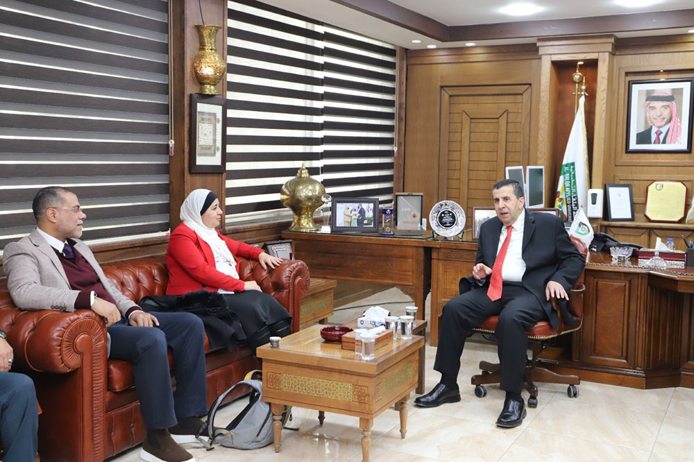 استقبل رئيس جامعة البلقاء التطبيقية الاستاذ الدكتور أحمد فخري العجلوني في مكتبه الدكتورة رغدة الفاعوري رئيس هيئة تنمية وتطوير المهارات المهنية والتقنية، وتم خلال اللقاء مناقشة المسودة الأولية للاستراتيجية الوطنية للتعليم والتدريب المهني والتقني، والتي تم اعدادها بدعم من وكالة التعاون الدولي الألماني (giz).
