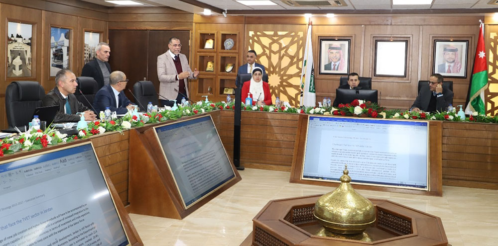 وأكد الدكتور العجلوني على أهمية وجود استراتيجية موحدة لقطاع التعليم والتدريب المهني والتقني تشمل كافة الجهات المعنية لخلق بيئة عمل بالقطاع تتسم بالشفافية والتشاركية والتعاون مع ضرورة إبراز دور القطاع الخاص في تنفيذ مبادرات وبرامج الاستراتيجية. كما أكد رئيس الجامعة على دور جامعة البلقاء التطبيقية في تحسين جودة مخرجات التعليم المهني والتقني من خلال الدبلومات الفنية المختلفة ومن خلال هيئة تدريس محترفة.