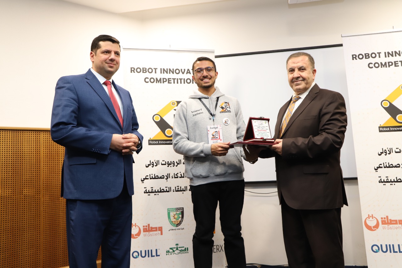 ونقل نائب الرئيس الأستاذ الدكتور زكريا القضاة تحيات رئيس الجامعة مشيرا الى ان الجامعة تدعم وتشجع طلبتها على المشاركة في المسابقات والتحديات العلمية محليا وإقليميا ودوليا والتي يظهر من خلالها الطلبة افكارهم ومواهبهم وإبداعاتهم وصقل الشخصية وإكسابهم المهارات المختلفة والتي تمكنهم من دخل سوق العمل والمنافسة ، كما قدم شكره لكلية الذكاء الاصطناعي على حرصها المتواصل على تنمية مهارات الطلبة وخاصة في مجال الروبوتات ودعم مواهبهم وتحويل أفكارهم ومشاريعهم إلى أفكار ريادية وإبداعية لما لها الأثر الأكبر في تكوين وصقل شخصيتهم وإعدادهم لسوق العمل.