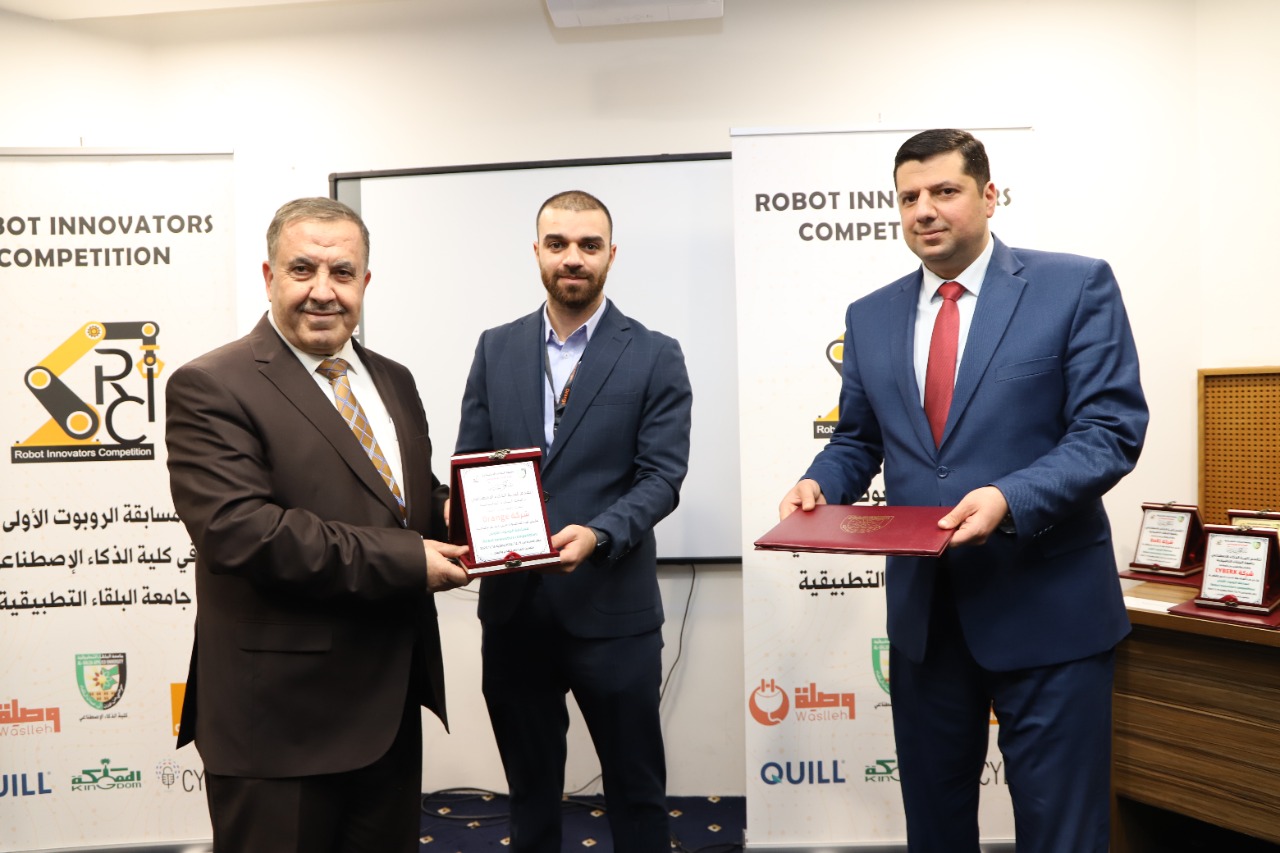 مندوباً عن رئيس جامعة البلقاء التطبيقية الأستاذ الدكتور أحمد فخري العجلوني رعى نائب الرئيس للشؤون الأكاديمية الأستاذ الدكتور زكريا القضاة مسابقة الروبوت الأولى والتي نظمتها كلية الذكاء الاصطناعي وبالتعاون مع شركة cyberx وشركة اورانج وشركة quill وشركة وصلة ومطعم المملكة وشركة نسكافيه ومحلات save side بحضور عميد الكلية الدكتور حمزة الدباس ونواب ومساعدي العميد وعدد من الطلبة.