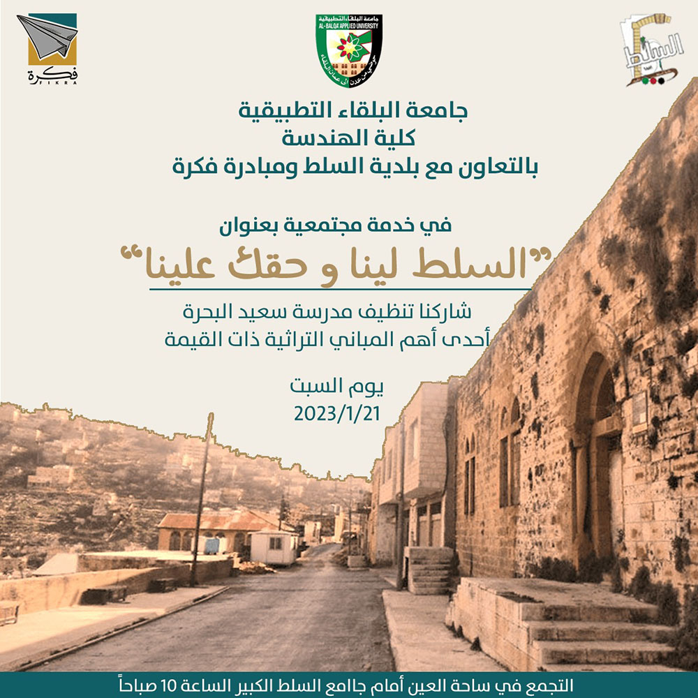 ضمن المبادرات والخدمات الاجتماعية التي تقوم بها جامعة البلقاء التطبيقية/ كلية الهندسة، وبالتعاون مع فكرة مبادرة شبابية وبلدية السلط الكبرى... ضمن حملة