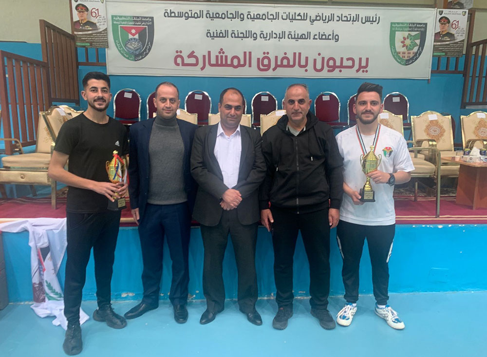 تتقدم عمادة كلية الكرك الجامعية ممثلة بعميد الكلية الأستاذ الدكتور محمد نايف الصرايرة ومساعديه للشؤون الطلابية والأكاديمية وأعضاء الهيئتين التدريسية والإدارية بالتهنئة والتبريك لطلبتنا الأعزاء  بفوزهم بالمركز الأول بالبطولة التاسعة عشر للاتحاد الرياضي للكليات الجامعية بجامعة البلقاء التطبيقية في مدينة العقبة وذلك بمناسبة احتفالات الجامعة بالعيد الواحد والستين لميلاد جلالة الملك عبدالله الثاني بن الحسين المعظم  من خلال الفوز ببطولة الطاولة عن طريق الطالب هيثم البستنجي  وبطولة الريشة عن طريق الطالب ابراهيم الصقور على مستوى كليات المملكة.