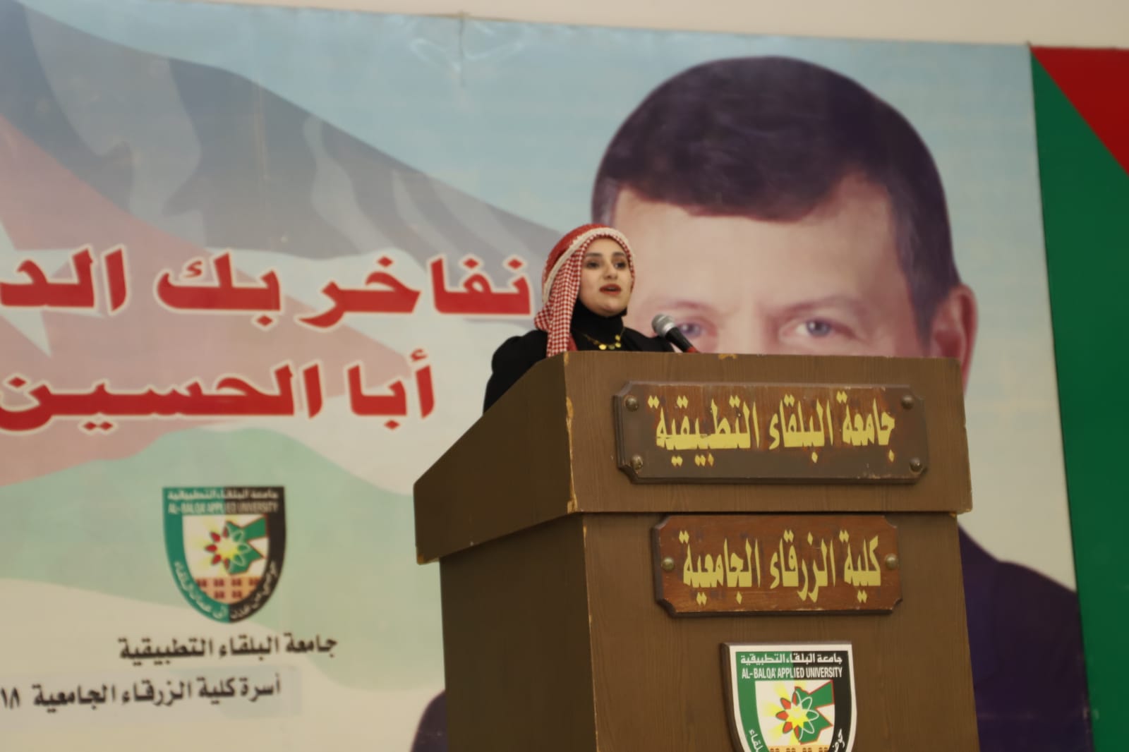مشيرا ان جامعة البلقاء التطبيقية تنفذ هذه التوجيهات الملكية في تنوير الشباب وتشجيعهم على الانخراط في العمل السياسي والحزبي الوطني النابع من ثرى هذا الوطن والذي يقدس شريعة الوطن والقيادة الهاشمية ويضعها على سلم أولوياته وبرامجه.