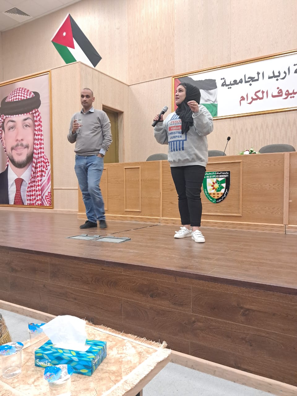 نظمت كلية اربد الجامعية /جامعة البلقاء التطبيقية محاضرة تثقيفية بعنوان"العنف الأسري"، بهدف توعية الطلبة حول ماهية العنف الأسري والآثار المترتبة عليه وتداعياته المجتمعية الخطيرة. وتحدث  فيها من إدارة حماية الاسرة والاحداث في محافظة  اربد  الملازم خالد الحديد، والرقيب ولاء الرواش عن أهم واجبات إدارة حماية الأسرة، حيث تعتبر أهم ركيزة في المجتمع من أجل الحفاظ على تماسك النسيج المجتمعي، ونشر التوعية بين أفراد المجتمع حول ضرورات حماية أفراد الأسرة من العنف . وأكد دور حماية الأسرة في حل قضايا العنف الأسري وكيفية التعامل معه مع مراعاة الخصوصية والسرية التامة ، لافتا إلى مدى انتشار العنف الأسري في المجتمع . وأشار إلى ان إدارة حماية الأسرة تعنى ،خلال السنوات الأخيرة ،بالتركيز على رفع الوعي للمجتمعات المحلية وذلك عبر تنظيم المحاضرات التوعوية لما لها من أهمية بالغة بإطلاع المجتمعات على أهم خدمات الإدارة لضحايا العنف الأسري والاعتداءات الجنسية، من أجل الارتقاء بمستوى الخدمات الأمنية المقدمة للمواطنين وبما يحفظ كرامتهم.