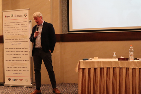 واستعرض مدير المشروع من الجانب الاردني الاستاذ الدكتور محمد معتوق من كلية الهندسة التكنولوجية مراحل انجاز المشروع على مدى ثلاث اعوام والنتائج النهائية للبحث الذي انجازه على معالجة مياه الزيتون الذي تمت في جامعة دي مونتفرت بعد ان تم تزويد فريق البحث بعينات من معصرة الجزازي لايجاد طريقة مبتكرة وتصميم مفاعل لتلتخلص من مادة الفينول العضوية في المياه التي تعتبر من اهم العناصر التي تحد من عملية اعادة استخدام مثل هذه المياه نظرا لخطورتها على البيئة وعدم القدرة للتخلص منها عبر شبكات الصرف الصحي استنادا الى المواصفة الاردنية التي تحظر عملية طرح من هذه المياه الا بعد المعالجة او التخلص منها في مكبات خاصة اعدت لهذه الغاية مما يشكل عبأ مالي على اصحاب المعاصر ومشكلة بيئية تحتاج الى معالجة.