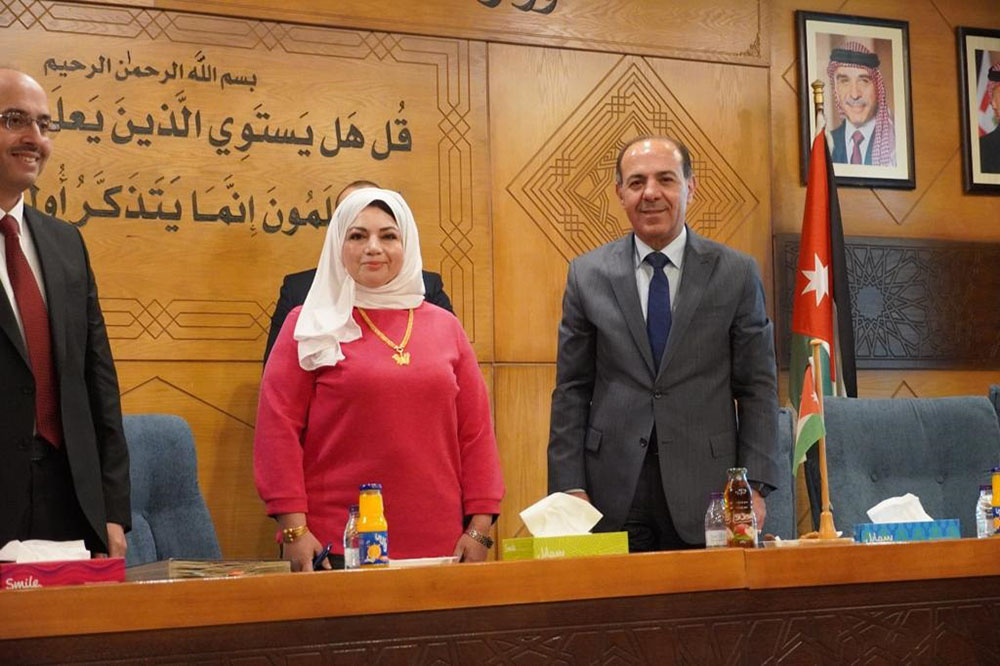 خلال الحفل الذي نظمته وزارة التعليم العالي والبحث العلمي تم التوقيع على اتفاقية لتمويل مشروع بحثي للباحثه الدكتورة ايناس الخلايفه من المختبرات الطبيه_كلية العلوم.