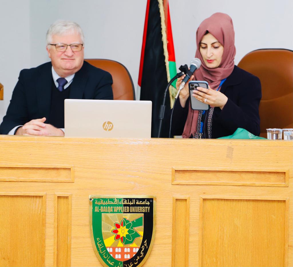 نظمت وحدة التعاون والعلاقات الدولية في جامعة البلقاء التطبيقية محاضرة بعنوان " فلسفة اللغة في اعمال الفارابي " لأكاديمي زائر للجامعة من مؤسسة  fulbright  الدكتور تيري كليفن وهو باحث متخصص في الدراسات الادبية الكلاسيكية والدراسات الدينية والأدب العربي.