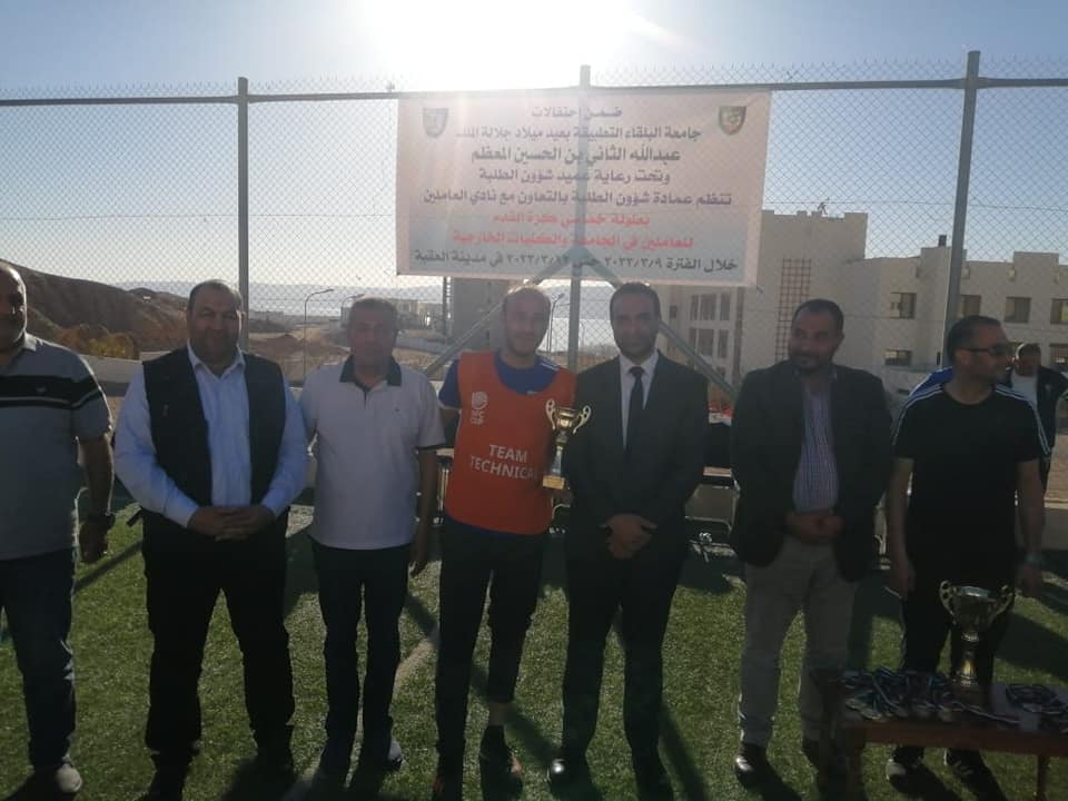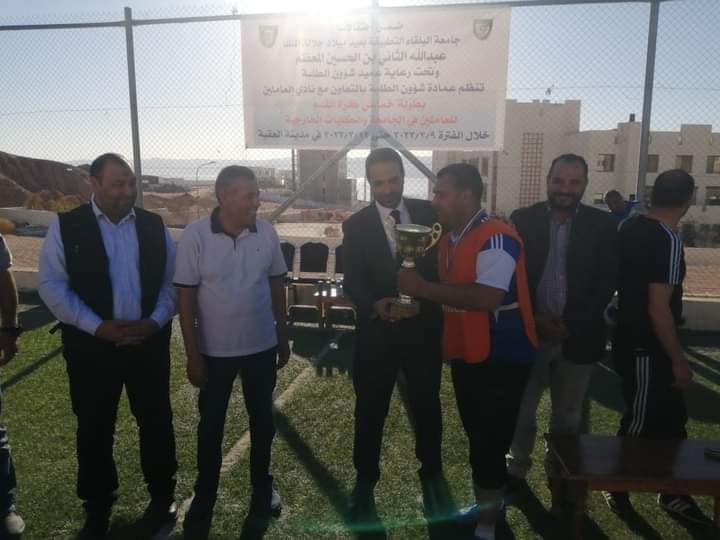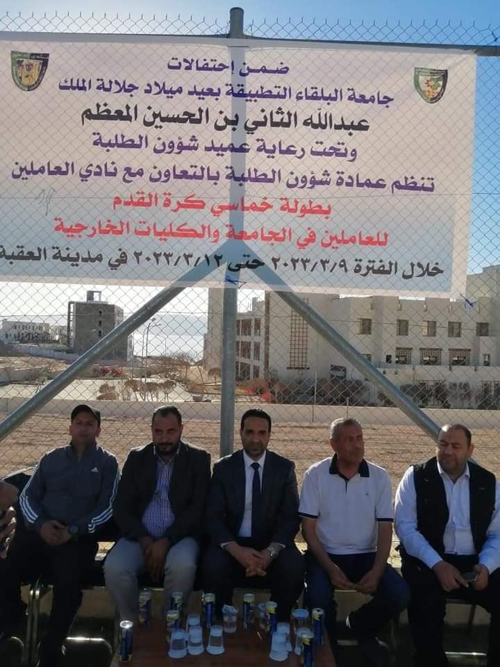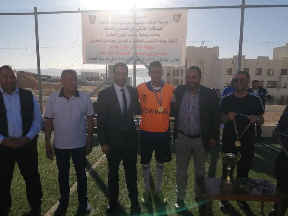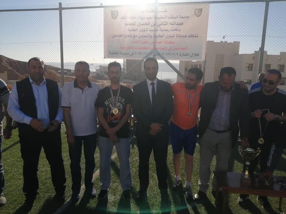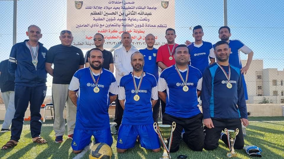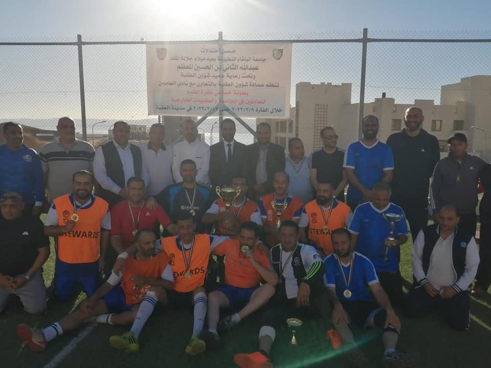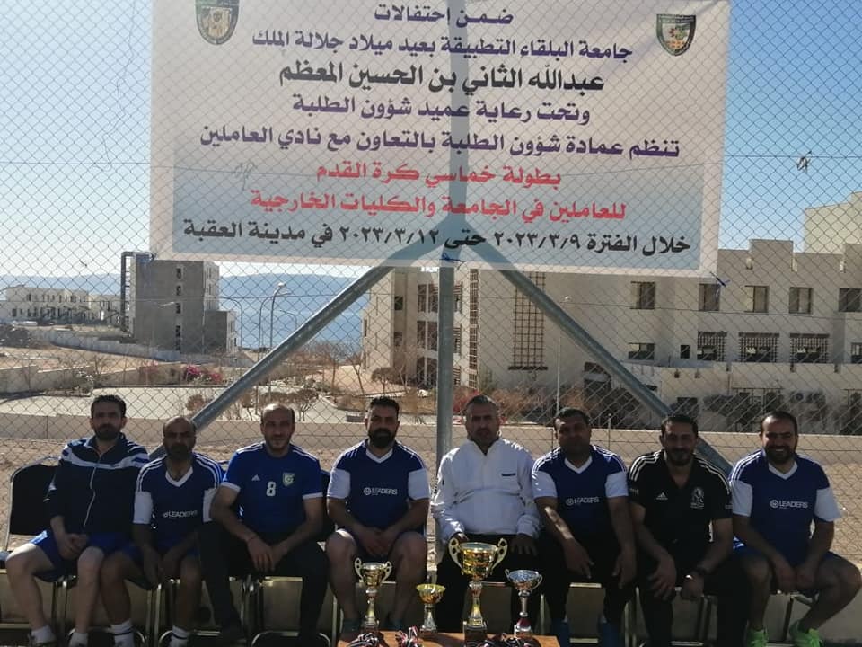 اختتمت فعاليات بطولة القائد لخماسي كرة القدم والتي أقيمت في مدينة العقبة بتنظيم مميز ومشترك بين عمادة شؤون الطلبة ونادي العاملين في جامعة البلقاء التطبيقية والتي جاءت ضمن سلسلة الإحتفالات بعيد ميلاد جلالة الملك عبدالله الثاني بن الحسين حفظه الله ورعاه. وبرعاية عميد شؤون الطلبة الدكتور خالد الزعبي.
