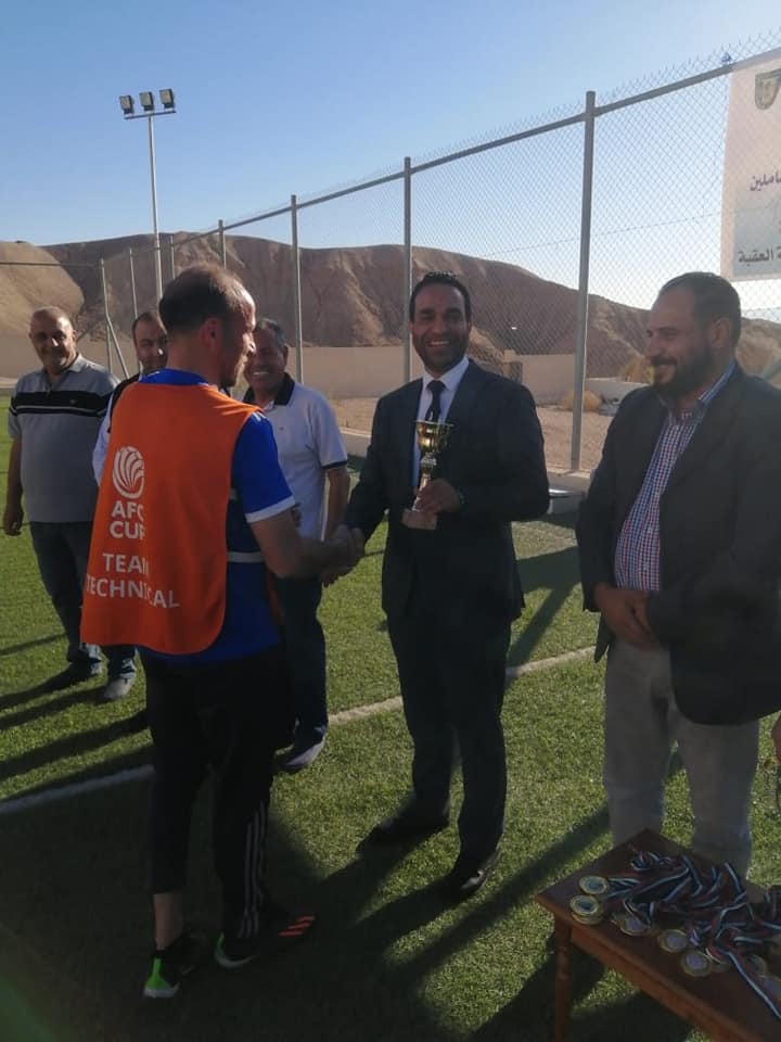 ومندوبا عن راعي البطوله الدكتور خالد الزعبي عميد شؤون الطلبه قام الدكتور عبداللطيف ابو رمان نائب عميد شؤون الطلبة بتسليم الكؤوس والميداليات والجوائز على مستحقيها.. وبحضور المهندس علي الدباس رئيس النادي والدكتور منور ابو هزيم مدير النشاط الرياضي وحضور مدير شباب العقبه الدكتور مخلد المجالي والسيد احمد الحسن مدير مدينة الامير حمزة في مدينة العقبة.