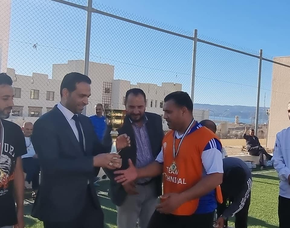 فريق نادي العاملين وتسلم الزميل حسام رحاحله كأس المركز الأول.
