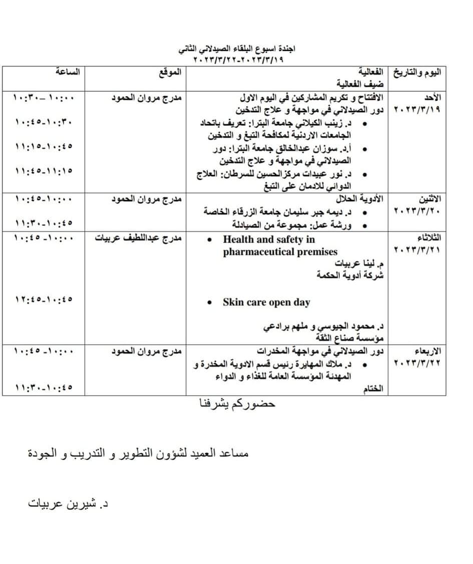 دعوة لحضور فعاليات أسبوع البلقاء الصيدلاني الثاني