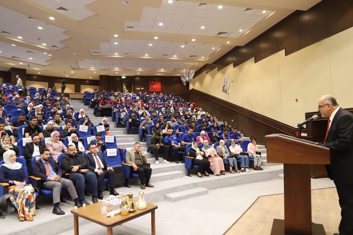 مندوباً عن رئيس جامعة البلقاء التطبيقية الأستاذ الدكتور أحمد فخري العجلوني افتتح عميد كلية الطب الأستاذ الدكتور شادي حموري، مؤتمر الاجتماع الوطني العام للإتحاد الدولي لجمعيات طلبة الطب – الأردن في كلية الطب، وبتنسيق مساعد العميد للشؤون الطلابية الدكتور طارق الشطناوي حيث رحب عميد الكلية الدكتور حموري في كلمته الإفتتاحية بالطلبة من جميع كليات الطب في المملكة، بالقدوم إلى شمس الجامعات والمشاركة في المؤتمر لتبادل الخبرات، والمهارات، على اعتبارأن هذا الإتحاد ما هو إلا منصة لطلابنا لإطلاق العنان لإمكاناتهم، وخدمتهم للمجمتع المحلي.