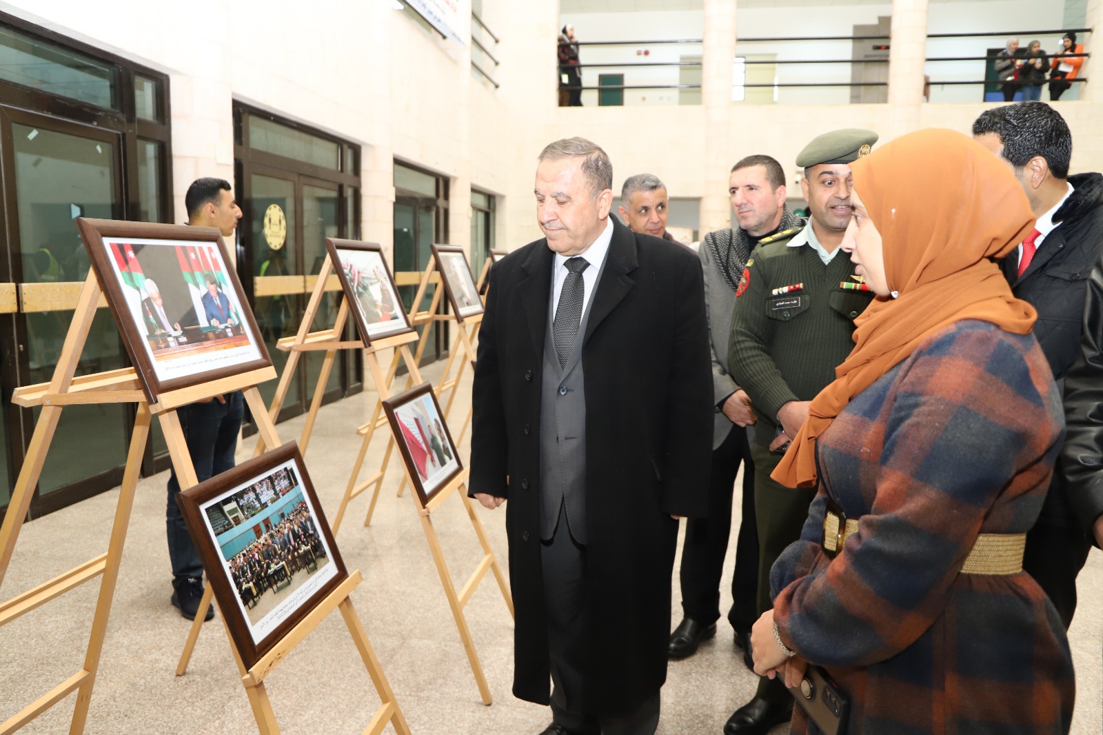 مندوبا عن رئيس جامعة البلقاء التطبيقية الاستاذ الدكتور احمد فخري العجلوني افتتح نائب رئيس الجامعة للشؤون الاكاديمية الاستاذ الدكتور زكريا القضاه معرض الصور الذي نظمته عمادة شؤون الطلبة بالتعاون مع المكتبة الوطنية بمناسبة احتفالات الجامعة بعيد ميلاد جلالة الملك عبدالله الثاني ابن الحسين الواحد والستين في مسرح المرحوم مروان الحمود في مركز الجامعة .