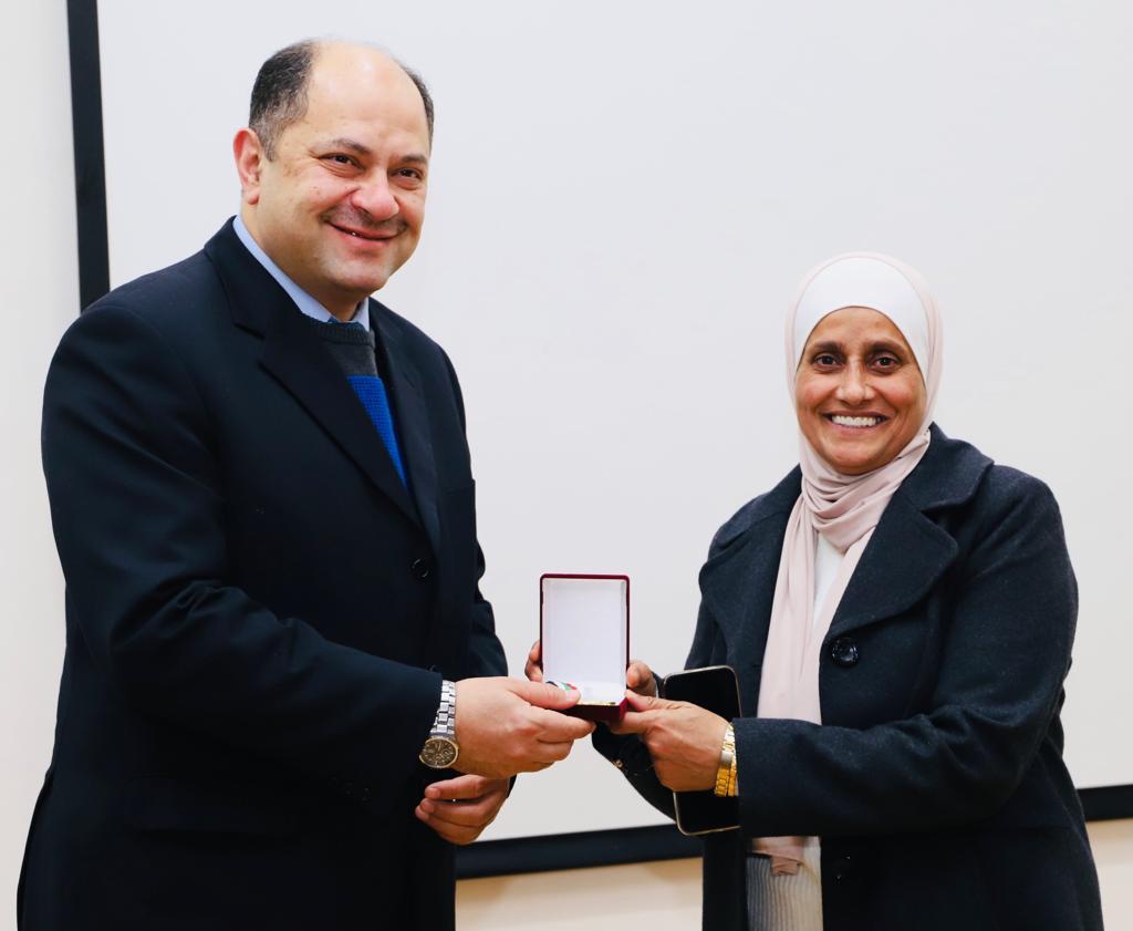 وفي ختام الفعالية سلم عميد كلية التمريض الدكتور لورنس الحديد الدروع التذكارية للمشاركين في أسبوع البلقاء الصيدلاني الثاني شاكراً لهم المعلومات القيمة التي قدموها لطلبة كلية التمريض.