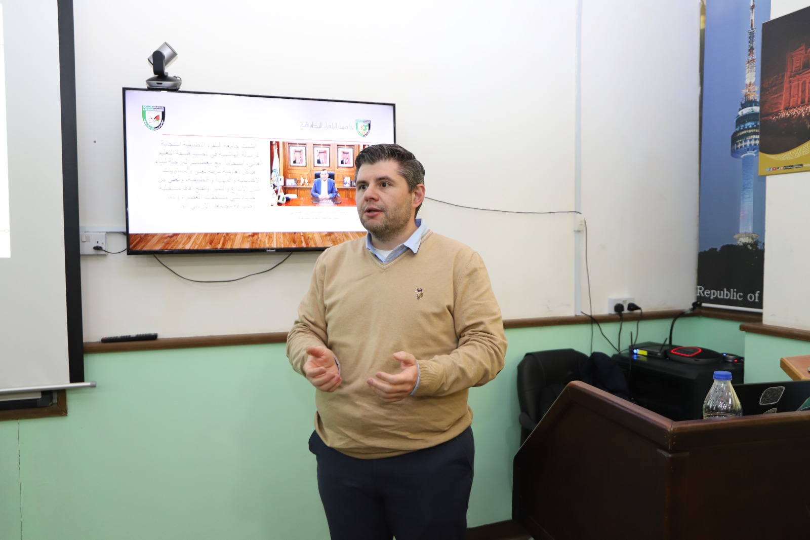 وحضر الجلسة عميد البحث العلمي والإبتكار الأستاذ الدكتور سعيد أبو رمان وعميد كلية الهندسة الأستاذ الدكتور سميح الرواشده ومديرة وحدة التعاون والعلاقات الدولية الدكتورة دانا محادين ومدير مركز الإبتكار والإبداع وريادة الأعمال الدكتور أوس القيسي.
