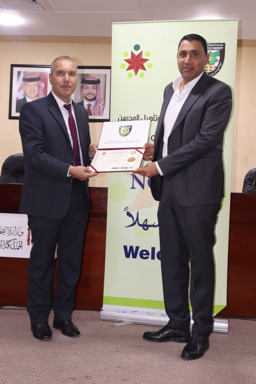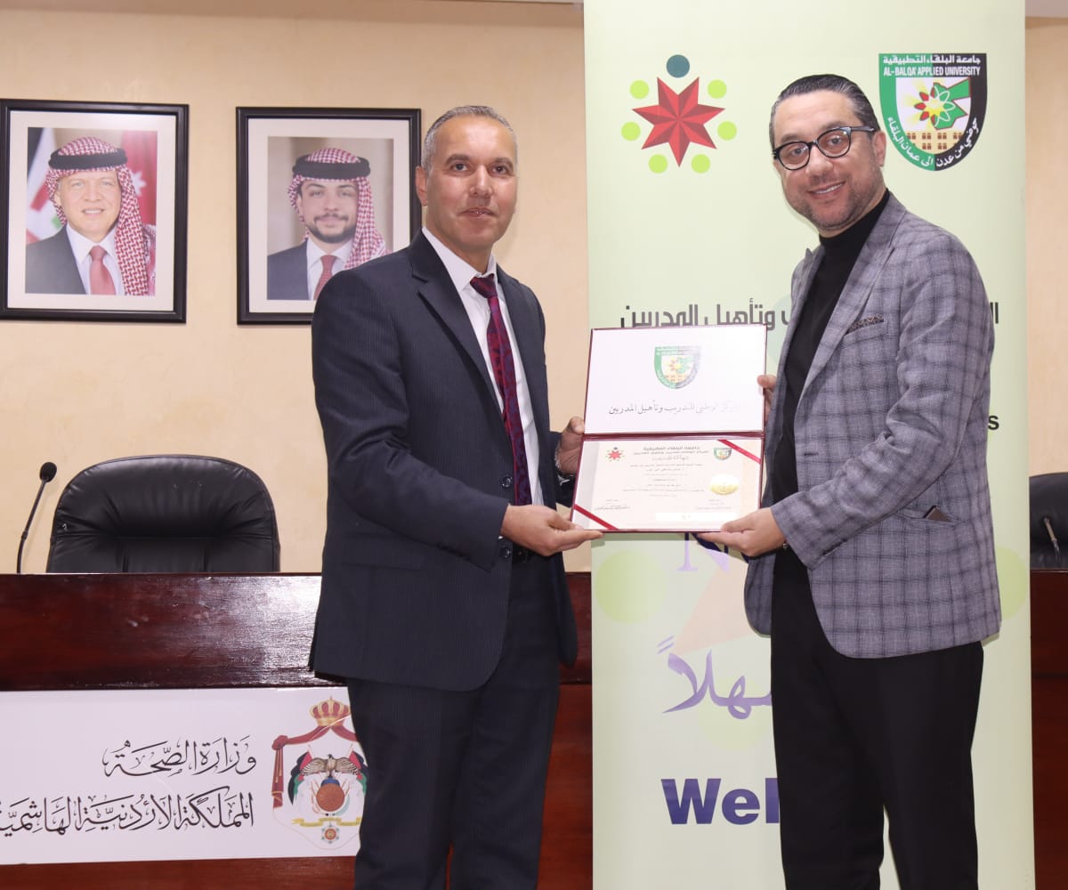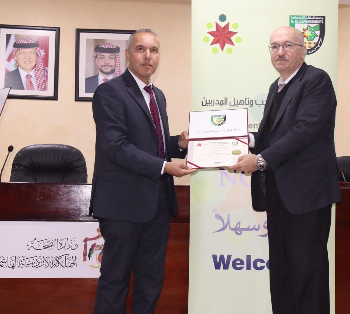 مندوباً عن عطوفة رئيس جامعة البلقاء التطبيقية الأستاذ الدكتور أحمد فخري العجلوني رعى الأستاذ الدكتور زيد سليمان العدوان مدير المركز الوطني للتدريب وتأهيل المدربين اختتام دورة إدارة المستشفيات والتي تعقد لعدد من مدراء المستشفيات في وزارة الصحة , والتي تهدف الى التعرف على أهم التطورات الحديثة في مجال إدارة المستشفيات والمنشآت العلاجية والتعرف على وظائف الإدارة في المستشفيات واكتساب المفاهيم الاساسية للرعاية الصحية وتحليل العملية الادارية في المستشفيات.