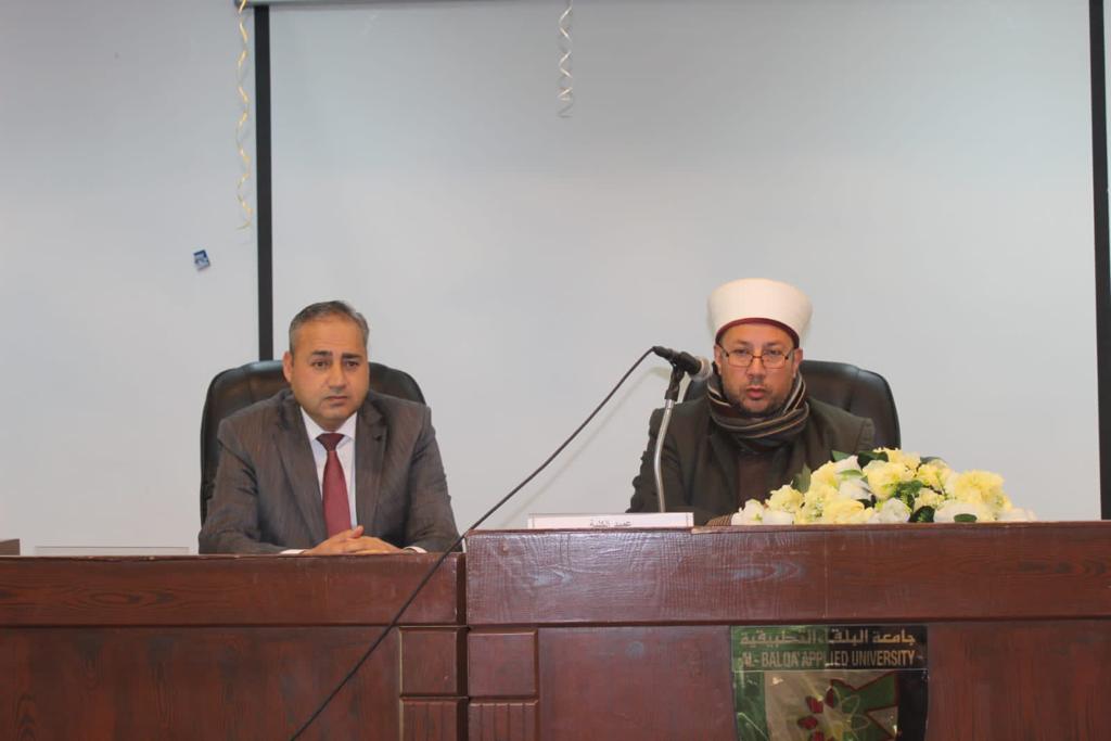 أقام قسم النشاطات الطلابية في كلية الاميرة رحمة الجامعية / جامعة البلقاء التطبيقية محاضرة دينية بعنوان ( فضائل الشهر الفضيل ) بمناسبة حلول شهر رمضان المبارك القاها فضيلة الشيخ مفتي محافظة البلقاء الدكتور هاني العابد بحضور عميد الكلية الدكتور مزيد حياصات واعضاء الهيئتين التدريسية والادارية وطلبة الكلية