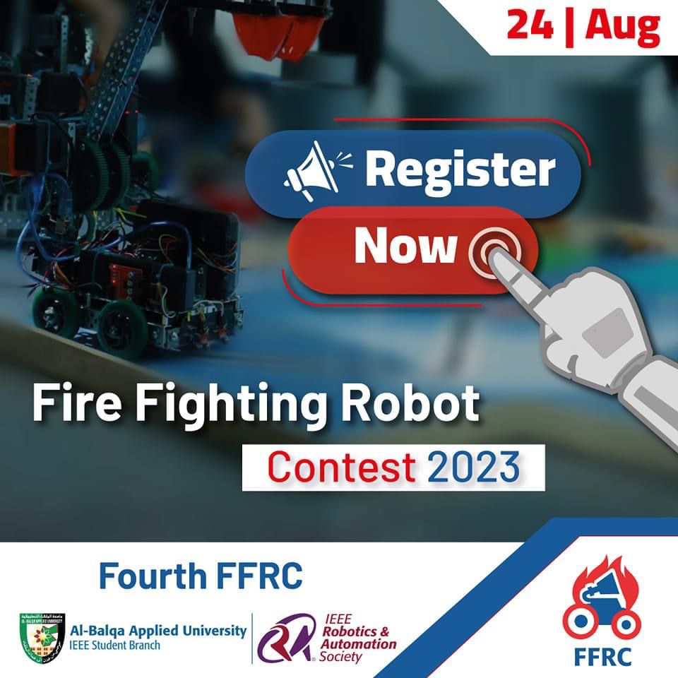 بالتنسيق مع مركز الابتكار والابداع وريادة الاعمال في عمادة البحث العلمي و الابتكار ؛ يعلن مجتمع الروبوتات والأتمتة (IEEE BAU RAS) عن تنظيم النسخة الرابعة من مسابقة روبوتات إطفاء الحريق Fire Fighting Robot Contest (FFRC) يسرّنا وأخيرًا أن نعلن لكم عن فتح باب التسجيل في المسابقة.