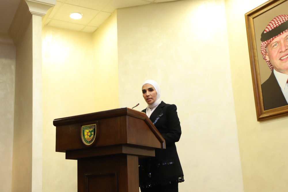وألقت الطالبة اليسا الزيود كلمة الطالبات القابلات تحدثت فيها عن برنامج القبالة والعناية بحديثي الولادة وان الهدف منه هو اعداد قابلات مؤهلات وذات كفاءة يعملن بشكل مستقل في المجتمع المحلي ووحدات الولادة في المستشفيات لتقديم الرعاية بشكل متكامل وإيجابي.