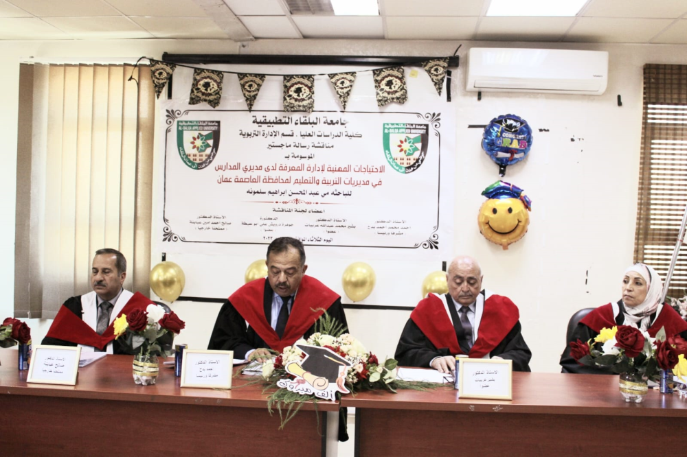 تم في مساء يوم االثلاثاء الموافق 9/5/2023 ، مناقشة رسالة ماجستير للطالبة مي عبد المحسن سلمونه تخصص الادارة التربوية قسم العلوم التربوية والموسومة بـ :