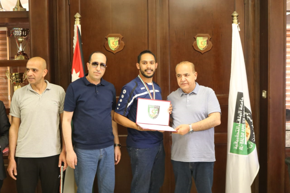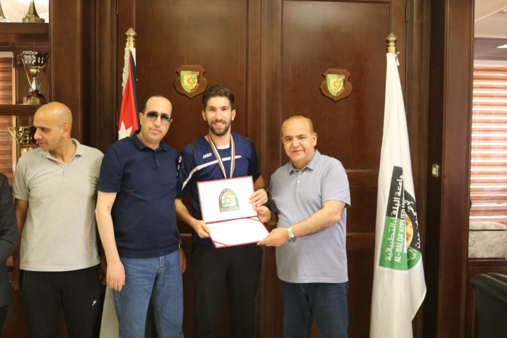 تقديراً لجهودهم في بطولة الاستقلال ضمن اتحاد الكليات الجامعية والجامعية المتوسطة كرم عميد كلية عمان الجامعية الاستاذ الدكتور مروان النسور فريق كلية عمان لحصوله على المركز الاول في البطولة.