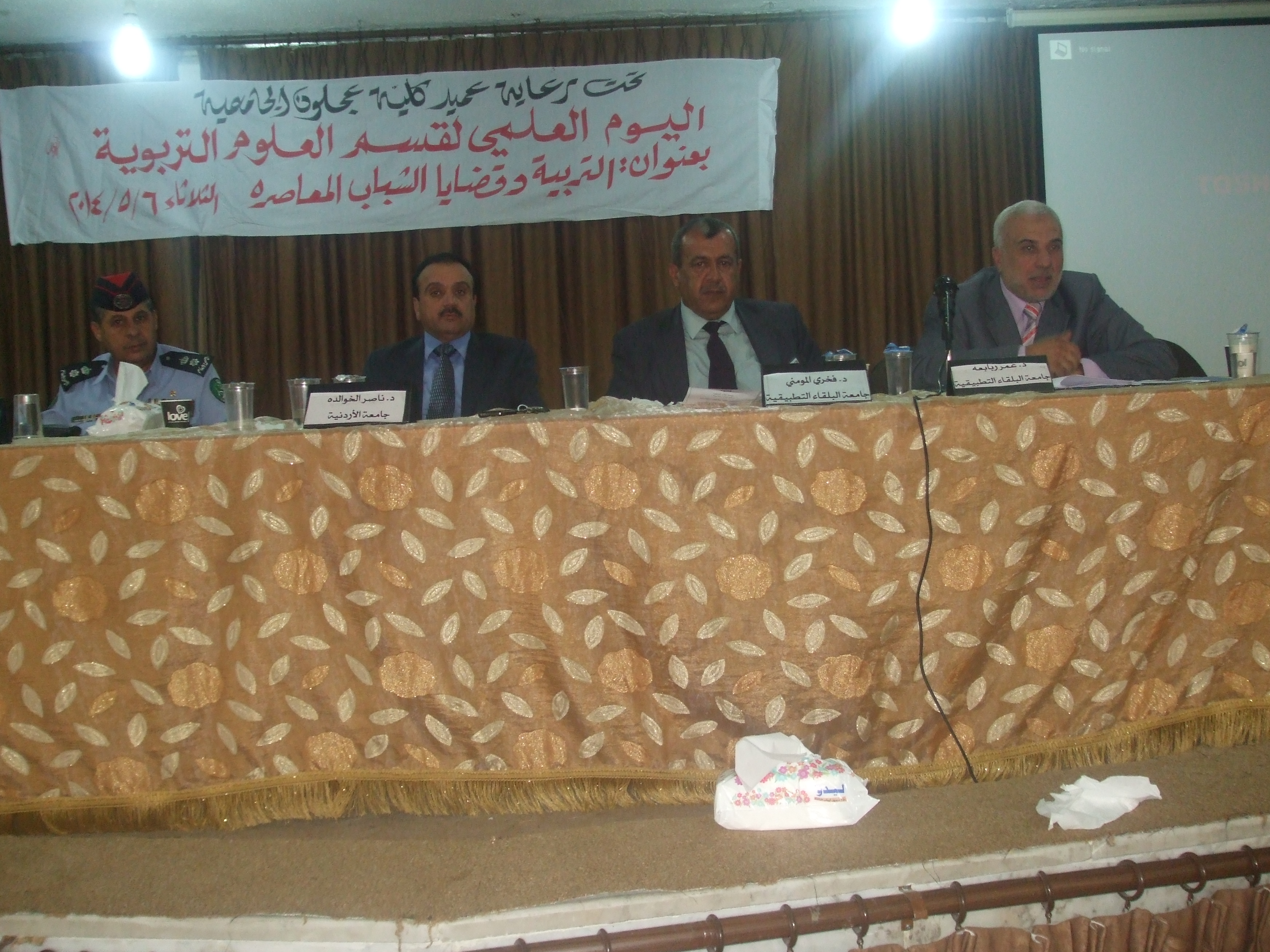 وأضاف الدكتور علي القضاة ان هذا اليوم العلمي جاء بهدف إبراز أهمية المنهجية التطبيقية في العلاقة بين الكلية والمحيط المجاور ، وان الواجب الديني والأكاديمي والوطني والدور الريادي التي تجسده الجامعة يسهم في نشر الثقافة والتسامح والمحبة وغرس الحب في نفوس أبناءنا الطلبة ورفدها بالعلم للنهوض بالوطن . وأثنى على قسم العلوم التربوية لدورهم المتميز والفاعل في إقامة هذا اليوم الذي يهتم بقاضايا الشباب ومعرفة الداء ووصف الدواء لما يعانيه شبابنا ، وقدم الدكتور عمار فريحات كلمة باسم اللجنة التحضيرية قال فيها " بأن هذا اليوم العلمي جاء ليبين أهمية الشباب في التنمية وتقدم الشعوب ودور وسائل الاتصال والتكنولوجيا في تغيير المفاهيم وتبديلها لدى هذه الفئة ولم ينسى هذا اليوم الشباب من ذوي الحاجات الخاصة والتركيز على قضية تأهيلهم وما يمكن ان يتعرضوا له من عنف .