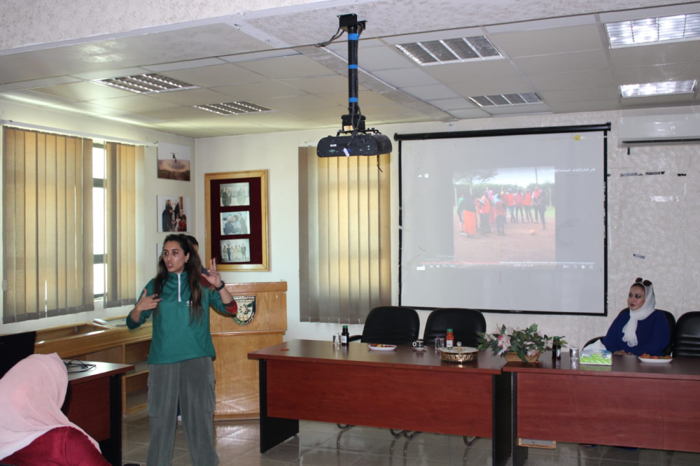 تم حضور المدربة اسراء العتوم من مؤسسة بادر للخير واوضحت بضرورة استثمار قوة الرياضه للتحرك نحو أهداف التنمية المستدامة ،وضرورة إيمان النساء بذاتهن وقدراتهن حيث لا بقتصر البرنامج على الطالبات وانما يستقطب جميع النساء بغض النظرعن العمر،او التخصص، واللون،وسيتم توفير الامكانيات لإنشاء فرق عن طريق مؤسسه بادر بالخير.