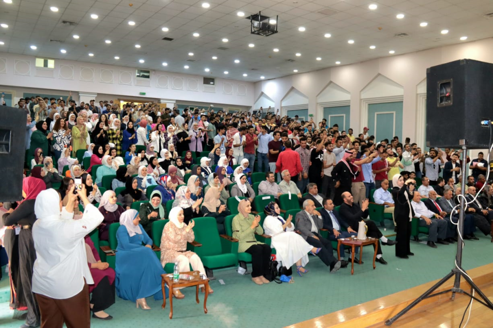 الحفل الكبير الذي نظمه قسم الانشطة الطلابية والنادي الثقافي وقسم العلاقات العامة والاعلام حيث اشتمل الحفل على عدة كلمات