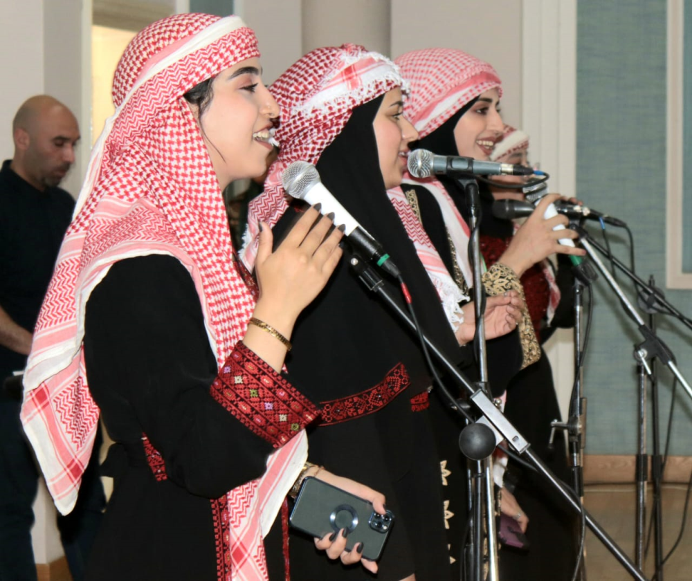 من جهتها شاركت طالبات كورال كلية الأميرة عالية بفقرة شعرية وغنائية وطنية تراثية ،باشراف الدكتورة مي الرقاد ومسؤول الكورال مهند العساف،وتفاعل الحضور بحماسة مع فقرة كلية الأميرة عالية الجامعية.