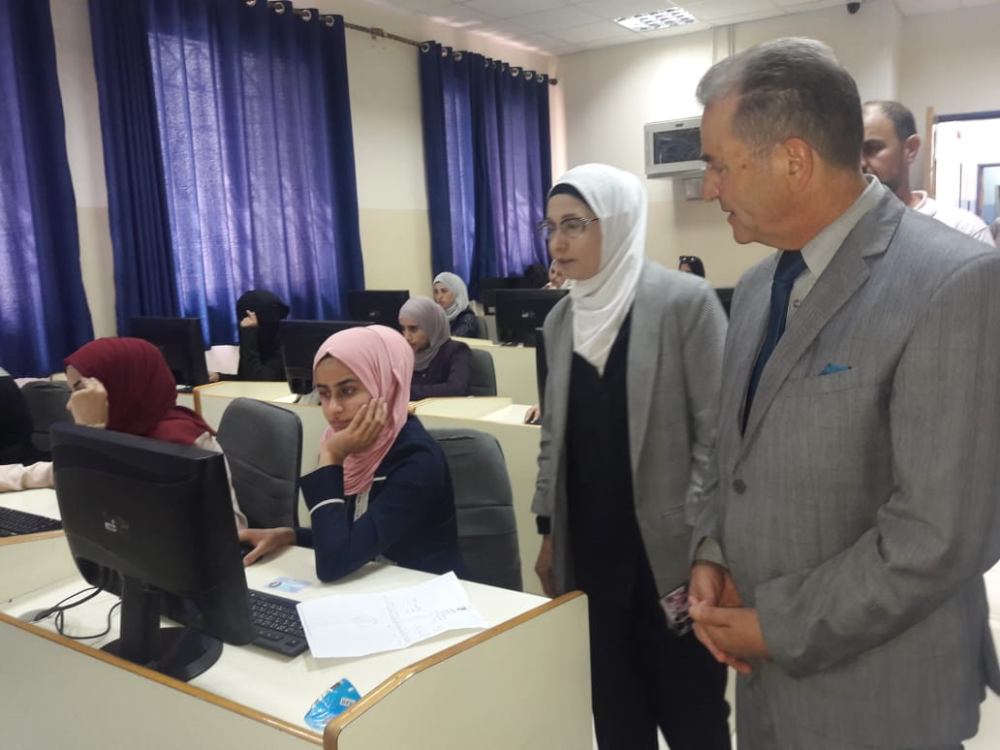 تفقدالأستاذ الدكتور ناصر كلوب نائب الرئيس لشؤون الكليات إجراءات سير الامتحان الشامل في كلية إربد الجامعية بحضور الأستاذة الدكتوره مريم فريحات عميدة الكلية ، حيث تفقد قاعات الامتحان الشامل في الكلية واستمع إلى آراء الطلبة حيال إجراءات الامتحان، ومدى تنوع الأسئلة فيها ومستواها، حيث أبدى الطلبة ارتياحهم لمستوى الاسئلة والوقت المتاح للإجابة والإجراءات المصاحبة للامتحان.