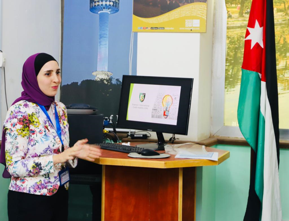 بدورها قدمت رئيس قسم التبادل الطلابي في وحدة التعاون والعلاقات الدولية تعريفًا ببرنامج ايراسمس بلس وكيفية التقدم للفرص وآلية التواصل مع وحدة التعاون والعلاقات الدولية والمتابعة مع الوحدة للإطلاع على فرص التبادل الطلابي و كيفية التقديم للحصول على تلك الفرص والدراسة في الجامعات الاوروبية الشريكة.