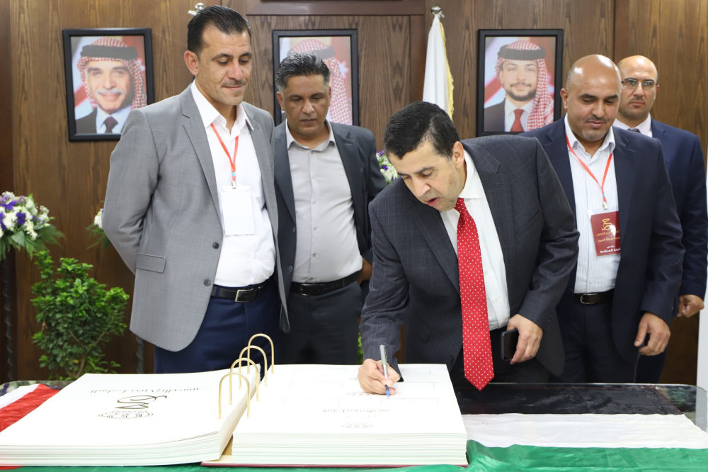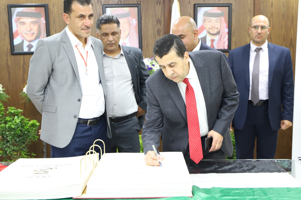 رئيس جامعة البلقاء الاستاذ الدكتور احمد فخري العجلوني قال خلال توقيعه على كتاب التهنئة في احتفال اقيم في الساحة الخارجية لمسرح الجامعة الرئيسي بحضور الاساتذة نواب الرئيس والهيئة التدريسية والإدارية وحشد من طلبة الجامعة: