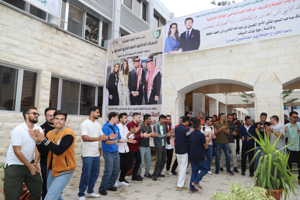 وعبرت اسرة الجامعة عن سعادتها وفرحتها بهذه المناسبة السعيدة ، مؤكدين ان عرس سمو الامير الحسين هو عرس وفرحة لكل بيت اردني ، رافعين اجمل باقات التهاني والتبريكات لصاحب الجلالة الملك عبدالله الثاني بن الحسين ولسمو الامير الحسين بن عبدالله الثاني ولي العهد .