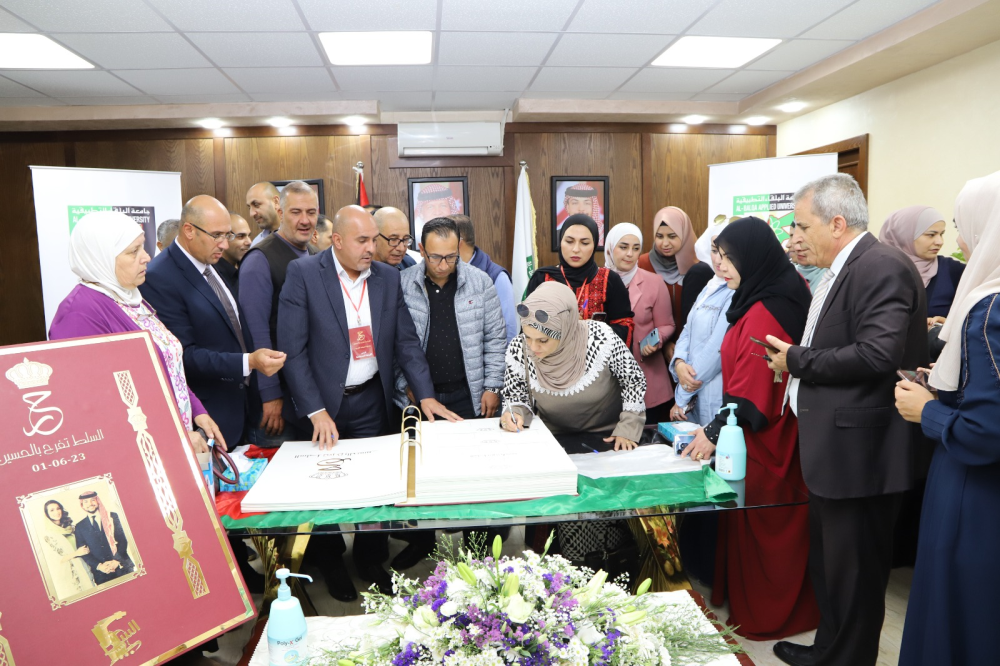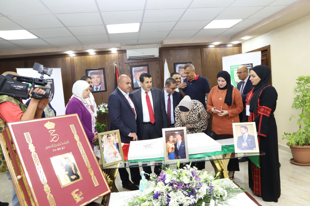 شاركت جامعة البلقاء التطبيقية الاردنيين وأهالي محافظة البلقاء ومدينة السلط فرحتهم بمناسبة قرب رفاف سمو الامير الحسين بن عبدالله الثاني ولي العهد ، وذلك من خلال رفع التهنئة والتبريكات والتوقيع على اكبر كتاب مباركة لسموه والذي اطلقته بلدية السلط الكبرى وبالتعاون مع قناة تراث السلط يوم امس بمشاركة شعبية واسعة من مختلف أطياف المجتمع في حفل أقيم في ساحة عقبة بن نافع وسط المدينة، بحضور الفعاليات الرسمية والشعبية.