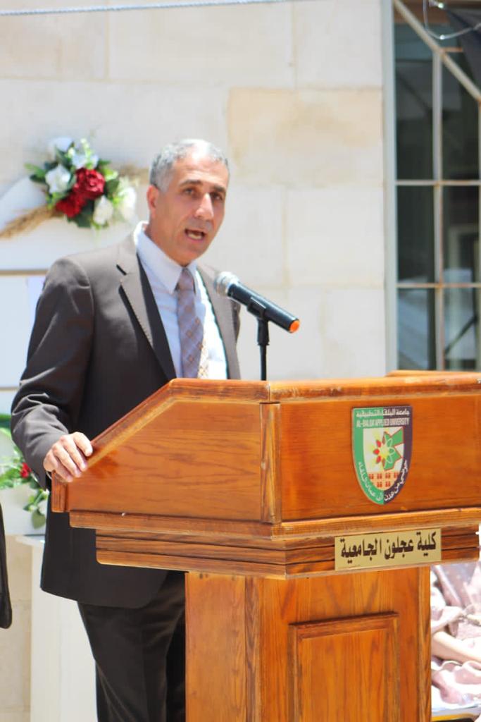 وفي بداية الإحتفال ألقى الأستاذ الدكتور وائل الربضي كلمة قال فيها إنّنا اليوم نحتفل بمناسبة عزيزة على قلوب الأردنيين جميعاً بكل آيات المحبة و الفرح و الاعتزاز ، وتقدّم الدكتور وائل الربضي بالّتهنئة والمُباركة باسم كلّيّة عجلون الجامعية ممثلة بهيئتيها الأكاديميّة والاداريّة و الّطلبة من مقام حضرة صاحبي الجلالة الملك عبداللّه الثاني والملكة رانيا و للأسرة الهاشميّة و لسمو ولي العهد أميرنا المحبوب و الأنسة رجوة آل السيف بمناسبة زفافهما الميمون ، داعين اللّه العلي القدير أن يُبارك لهما و عليهما و يرزقهما الذّرية الّصالحة ، وأن يحفظ اللّه سمو الأمير المفدي سنداً و ذخراً لمليكنا الأغلى و مملكتنا الحبيبة و الأردنييّن جميعاً الذين يلتفون حول القيادة الهاشميّة الحكيمة .