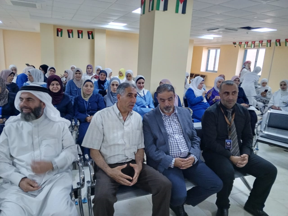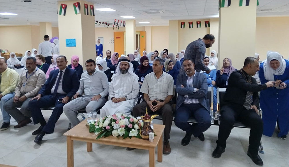 ضمن سلسلة النَّشاطات التي تقوم بها كلية عجلون الجامعية و تنفيذًا لتوجيهات عطوفة رئيس الجامعة الأستاذ الدكتور أحمد فخري العجلوني بإثراء تجربة التعليم والتعلُّم للطَّلبة، وتنمية قدراتهم،رعى عميد كلية عجلون الجامعية /جامعة البلقاء التطبيقية الأستاذ الدكتور وائل الربضي فعاليات اليوم التمريضي المفتوح في مستشفى الإيمان الحكومي وذلك بمناسبة اليوم العالمي للتمريض والذي يتزامن مع الإحتفال بالأعياد الوطنية يوم الاستقلال وزفاف صاحب السمو ولي العهد الحسين بن عبد الله بتنظيم من قسم العلوم التطبيقية /تخصص التمريض في كلية عجلون الجامعية بحضورالطبيب علي فريحات المساعد الإداري والفني مندوبا عن مدير مستفى الايمان الطبيب محمد فريحات ورئيس قسم العلوم التطبيقية الدكتورأسعد فريحات والدكتور خالد ربابعه رئيس قسم التخطيط والتطويروعدد من أعضاء الهيئة الإدارية في كلية عجلون الجامعية بتنسيق من طلبة التمريض في مادة تمريض صحة البالغين وبإشراف من المدرب السريري وجدان بني مرتضى