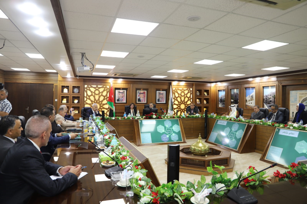 وقدم الدكتور العجلوني عرضا تقديميا حول كليات الجامعة المنتشرة على امتداد الوطن، واطلع أصحاب المعالي والسعادة أعضاء اللجنة على الخطط المستقبلية للجامعة وكلياتها والإجراءات الحالية التي تقوم بها لحل مشكلة النقص في البنية التحتية والتكنولوجية ومديونية الجامعة على المؤسسات الحكومية، إلى جانب الإجراءات الادارية والفنية لزيادة قدرة الجامعة على المنافسة محليا وإقليميا مثل زيادة المبتعثين وخفض رسوم البرامج الدولية لاستقطاب الطلبة من الدول الشقيقة والصديقة للدراسة في الجامعة.