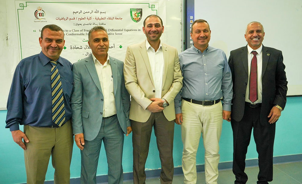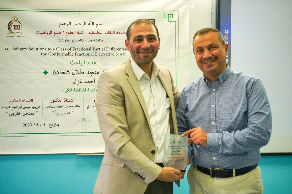 ضمن الاجراءات الاكاديمية المعتمدة في كلية العلوم جامعة البلقاء التطبيقية/ المركز للحصول على شهادة الماجستيرتم يوم الأحد الموافق 4/6/2023. مناقشة رسالة الماجستير في تخصص الرياضيات