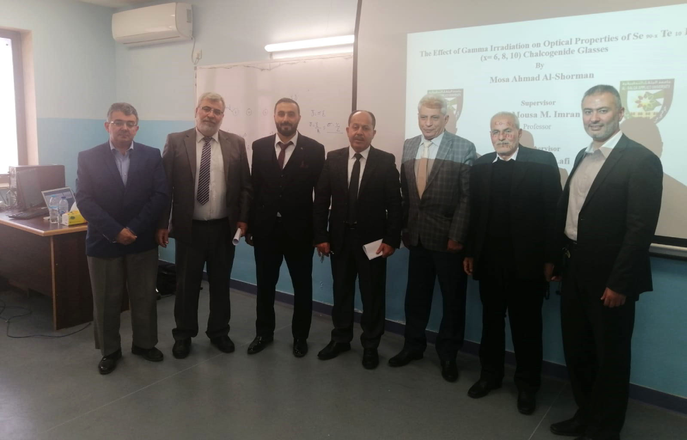 تم في قسم الفيزياء مناقشة رسالة الماجستير المقدمة من الطالب موسى احمد عقيل الشرمان الموسومة بعنوان: