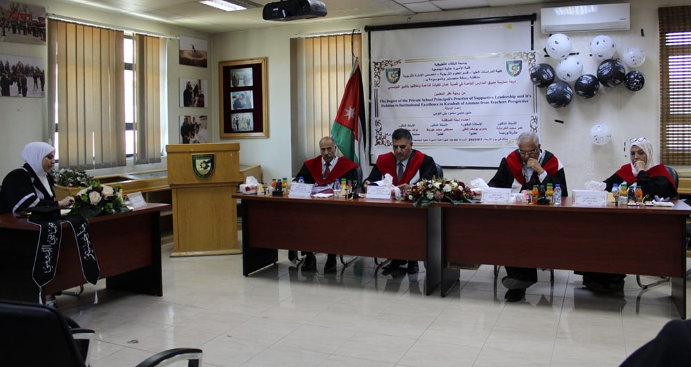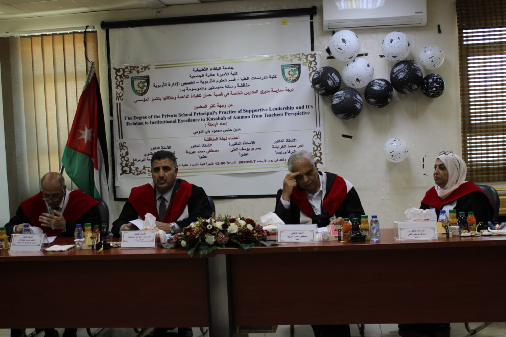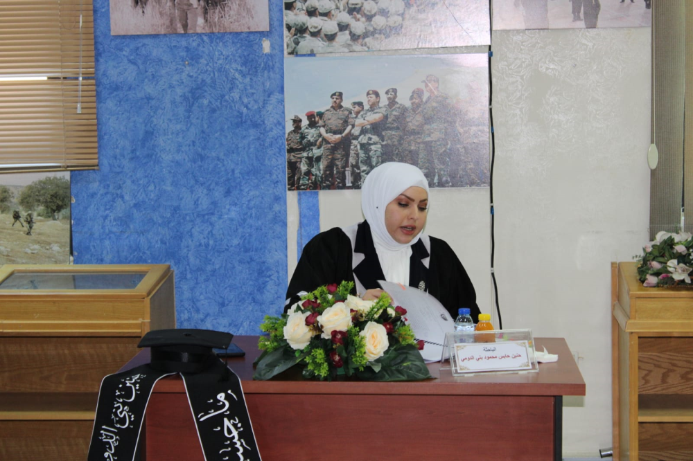 تم في مساء يوم الأربعاء الموافق 7/6/2023 ، مناقشة رسالة ماجستير للطالبة حنين حابس بني الدومي تخصص الإدارة التربوية قسم العلوم التربوية والموسومة بـ :